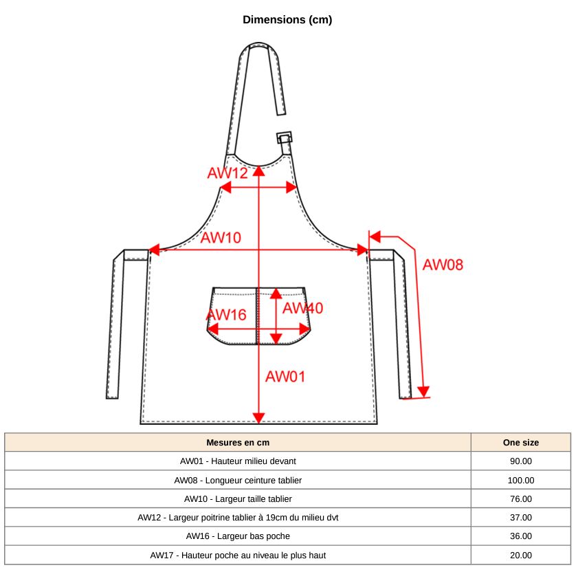 Made of 100% cotton, resistant (280g/m²) and easy to clean, this apron has two large central pockets. The metal adjustment buckle at the neck and the long ties at the waist guarantee a perfect fit for your morphology for an optimal comfort during your gigs. What I particularly like about it is its length! Indeed, I was tired of coming back with pants soiled by the sometimes muddy shoes of children who climbed on my high chair to be painted. You may have experienced this before.