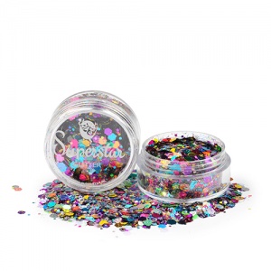 Donne à ton maquillage une magnifique touche "bling-bling" avec ces paillettes cosmétiques Superstar. Le Chunky Glitter Mix est composé de paillettes de polyester fines, moyennes et grandes pour un effet waw garanti !