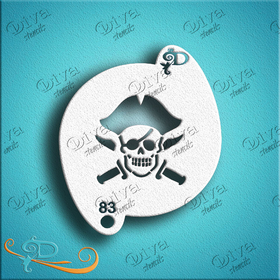 DIVA STENCILS - Small - 83 - Jolly Roger with Swords & Hat