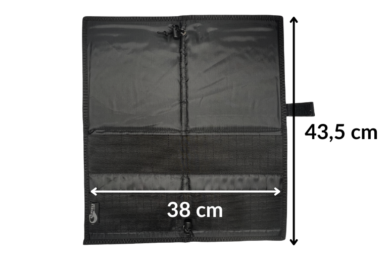 • Open: 43,5 cm x 38 cm x 1 cm